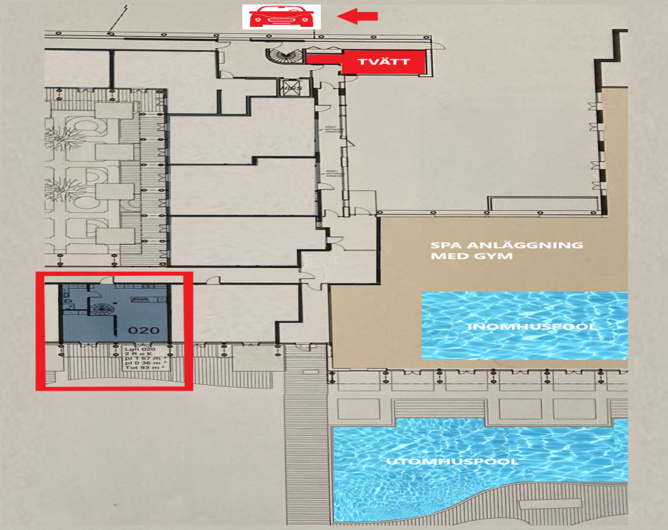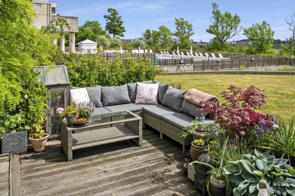 Övrigt: Brf Paviljongens grönområde om ca 17 000 kvm på Victoria Park erbjuder också möjlighet till sköna promenader samt boulebana, grillplatser, örtagård (medlemskap krävs här), en fin utomhus lounge Blå Lagunen med springvatten och trädgårdsmöblemang.