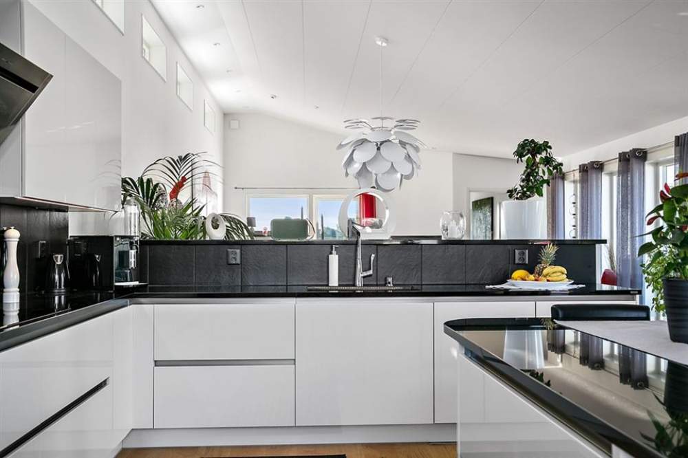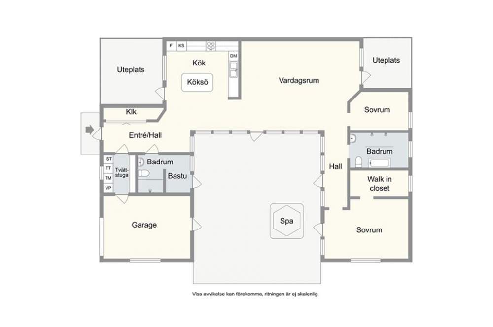 HALL: Genomgående vita väggar samt spots i tak. Stora gråmarmorerade ljusa klinker (80x80) på golv. Garderob längs hela ena väggen med spegelglas skjutdörrar och inredning. Ingång till grovkök samt till badrum 1.KÖK: Inredning från HTH i vit högglans med helsvarta granitbänkskivor från Kaptensgården samt även granitvask med belysning. Köksö med matplats för 4 personer samt granitskiva även här. Vitvaror från Siemens med undantag av spis från Husqvarna och fläkt från Fjärråskupan. Integrerad diskmaskin samt så även ugnar.