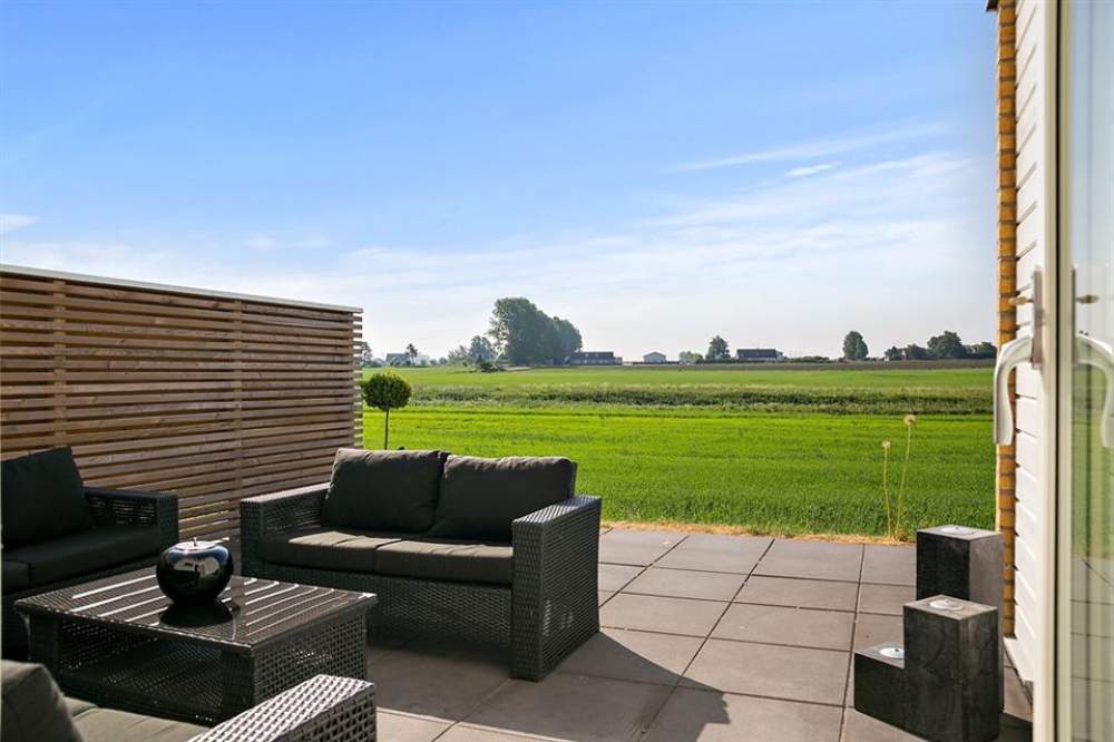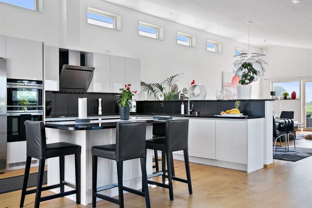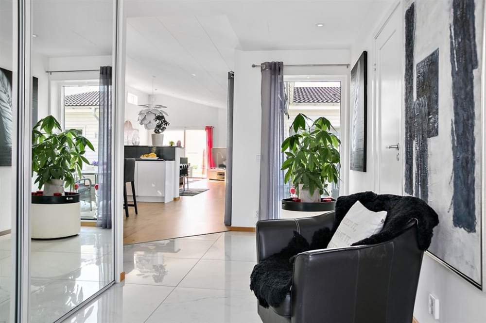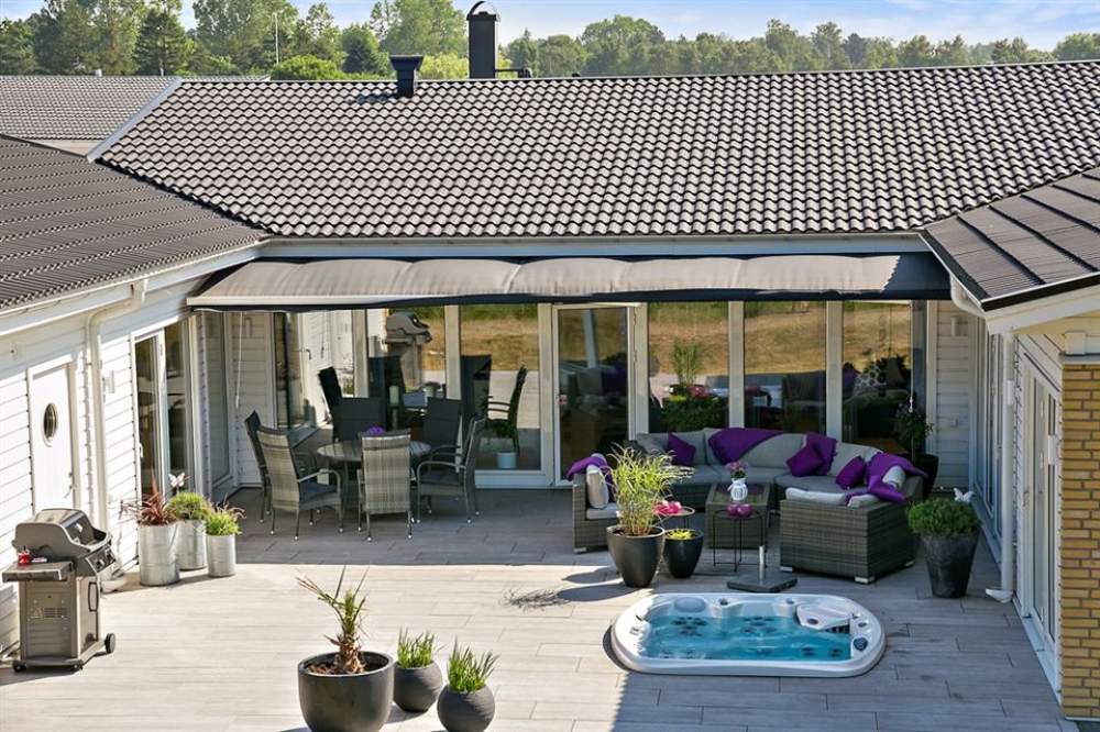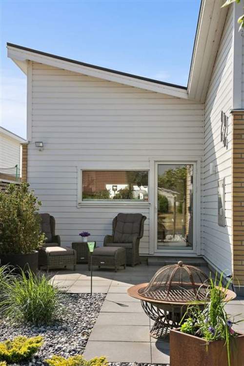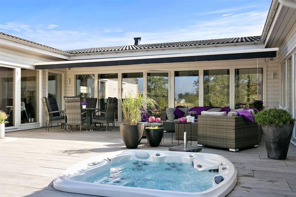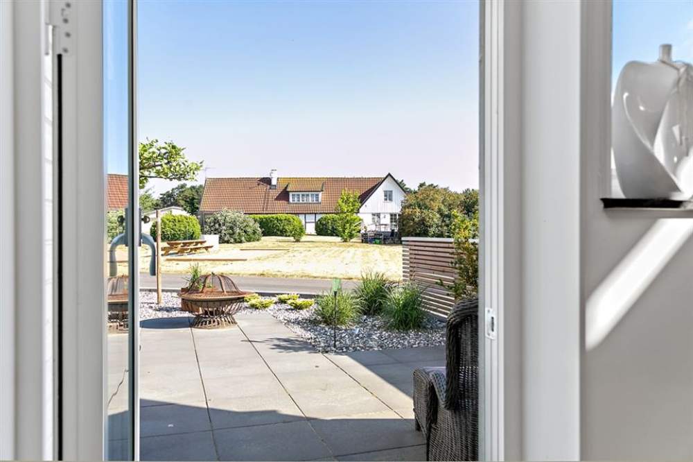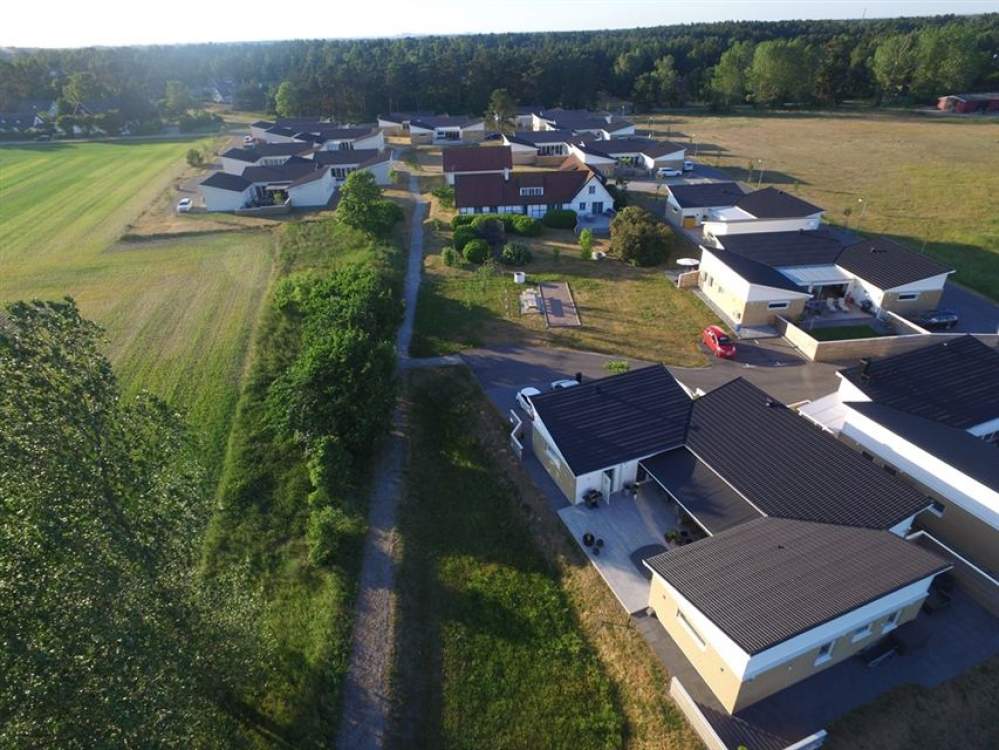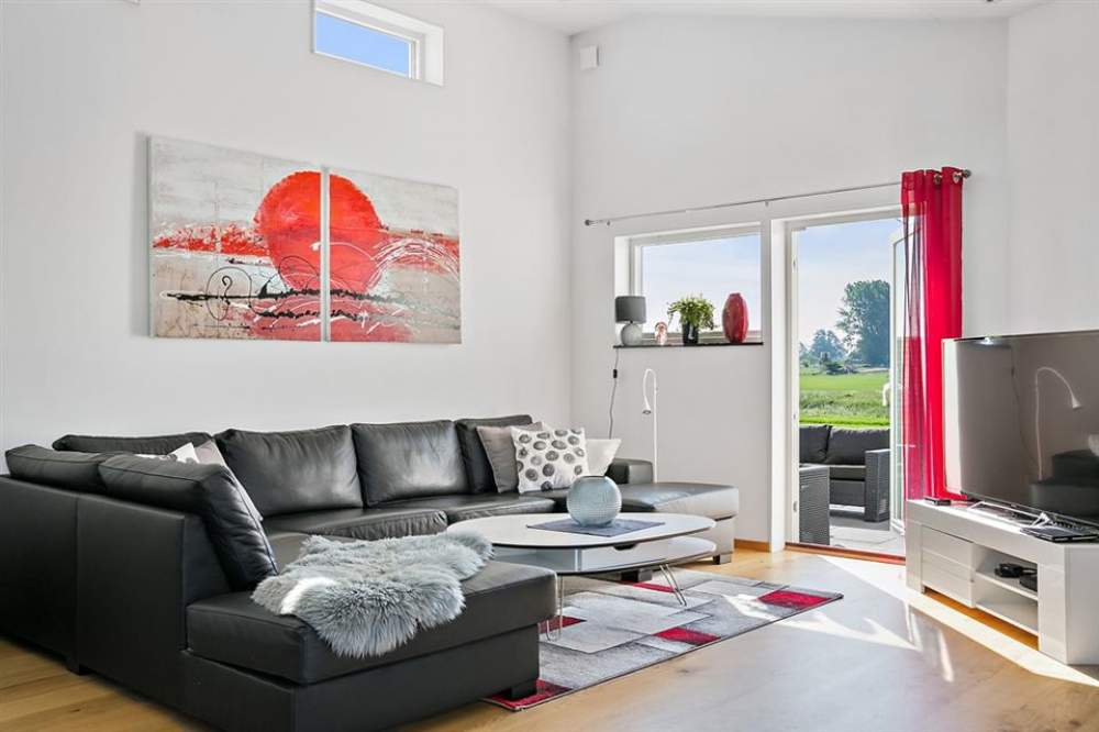 Här erbjuds man ett modernt energisnålt boende som ger mycket god driftsekonomi samtidigt som det kräver ett minimalt underhåll. Påkostade materialval och genomtänkt extrautrustning kompletterar funktionalismen. Bostaden har en öppen social planlösning med ett elegant och arbetsmässigt väl anpassat kök med stor köksö och bänkskivor i granit. En stor sällskapsyta med plats för såväl många middagsgäster som för den rejäla soffgruppen. De stora fönster partierna i kombination med takhöjden ger en fantastisk känsla av ljus och volym. Fortsätter man längre in i huset kommer man till den privata delen med Master bedroom och intilliggande walk in closet samt badrum med dubbla duschar. I denna delen finner man också ett ytterligare sovrum som även kan användas som gästrum alternativt kontor. Bostaden erbjuder också goda förvaringsmöjligheter och, förutom det stora integrerade garaget, både ytterligare biluppställningsplatser och separat intilliggande gästparkering. Uteplatser i tre väderstreck gör att man kan följa solen och vinden. Den största utgörs av en öppen atrium gård där den fjärrstyrda stora markisen kan bilda tak och ge skugga över däcket bestående av exklusiv underhållsfri klinkerkeramik. Här finns också den nersänkta jacuzzin av högsta kvalitet där upp till 5 personer kan bada året om helt utan insyn. Med fälten som granne i söder och väster och den ursprunglige markägarens gamla gård mitt emot skapas avskildhet i området och en charmig omgivning. Till detta kan läggas ett utmärkt läge med närhet till de större städerna i Öresundsregionen, golfbanor, strövområden, all service, dagis och skolor.